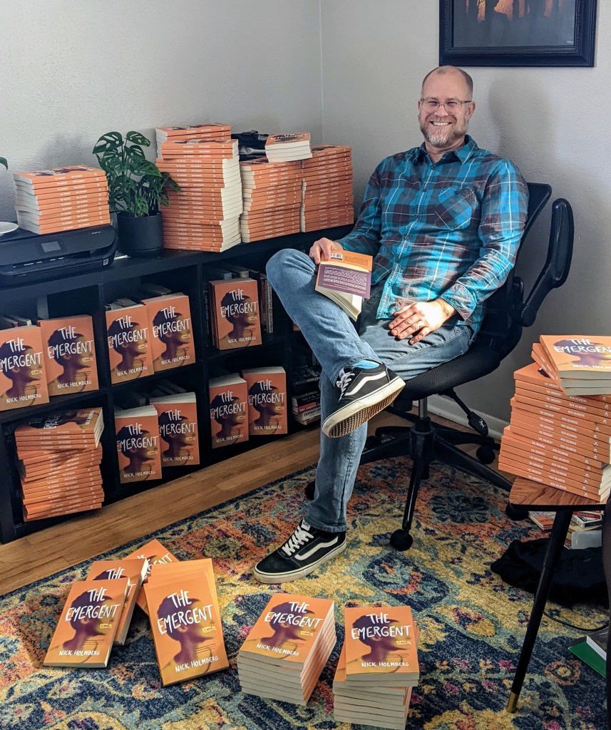 Nick Holmberg is an award-winning author who grew up in Northern California. He earned his BA in English from SJSU in 2000. While earning a Master’s in creative writing at The City College of New York, he started work on his first novel, The Emergent. Since 2004, he has lived and worked as an educator in his native California, as well as South Korea, Illinois, and Texas. Throughout all of this, he has experimented with content, form, and function on this website and in the novel.